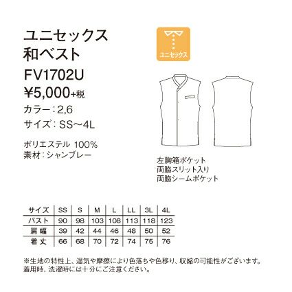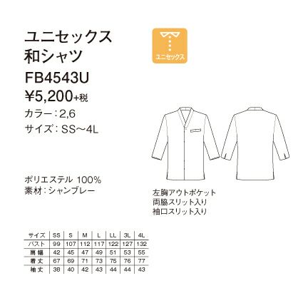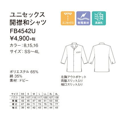 ユニセックス開襟和シャツ FB4542U ボンマックス