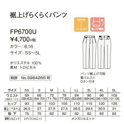 裾上げらくらくスリムパンツ FP6707U ボンマックス