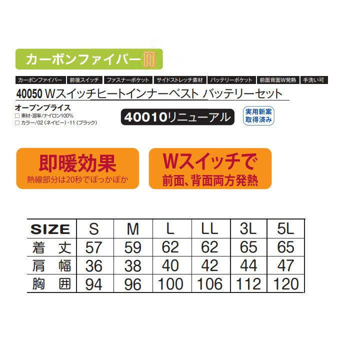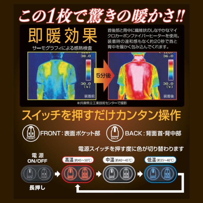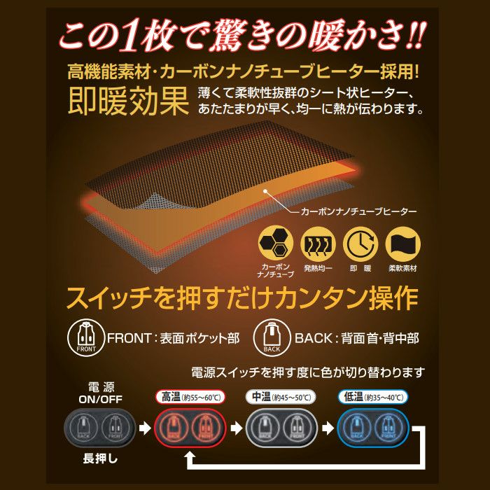 他の画像を見る 着た瞬間から暖かい高機能カーボンナノチューブと線状発熱体のハイブリット アタックベース|ヒーターベスト|電熱ウェア|バッテリー付き|70000 当店特別価格 ¥ 12,980 税込 詳細を見る お気に入りに登録する